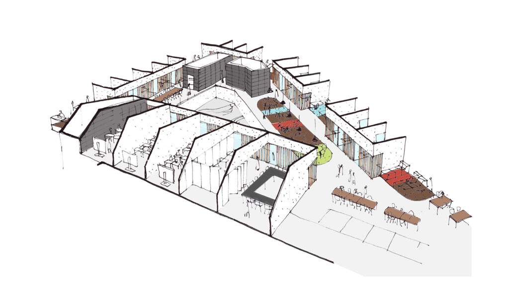 akoestische oplossingen tussen lokalen en open studiegebieden;